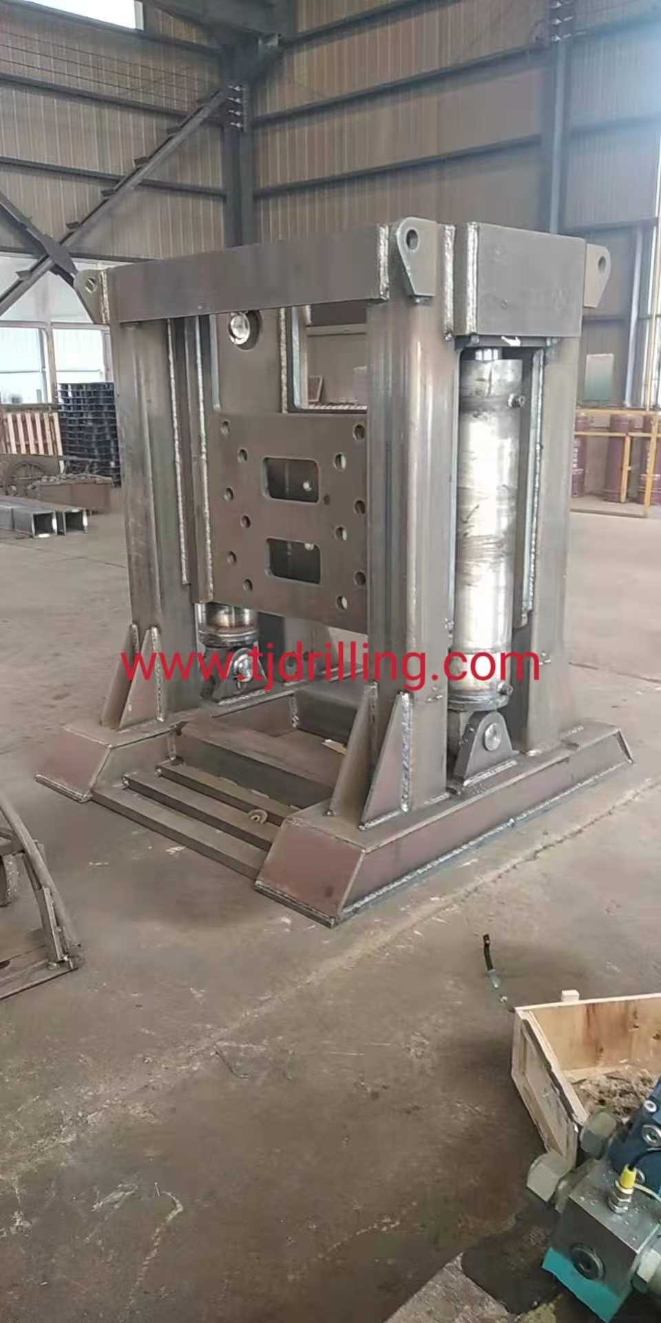 Hydraulic equipment designed for the extraction of diaphragm wall stop-end sheet piles width 600 to 1200 mm The unit is operated by a power pack and it is composed of heavy duty base frame with two trapezoid sliding columns maneuvered by 4 hydraulic rams with 750 mm stroke. The system is complete with locking system pins to ensure the stop end sheet piles to the sliding frames and to prevent dropping of the column.
